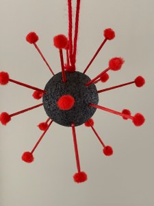 In just an afternoon’s time, we created a decent model of the coronavirus. It also allowed me to use some of those cardboard toilet paper holders we’ve been accumulating. I added a stray piece of yarn to mine so that I could hang it. After it was finished, I used it as a teaching tool to show how the virus sticks to counter tops or can hang in the air. Sometimes kids (mine especially) need constant reminders to clean their hands and giving them a way to see an invisible virus can help. I decided to hang mine up over the sink to remind them to wash their hands when they come inside.