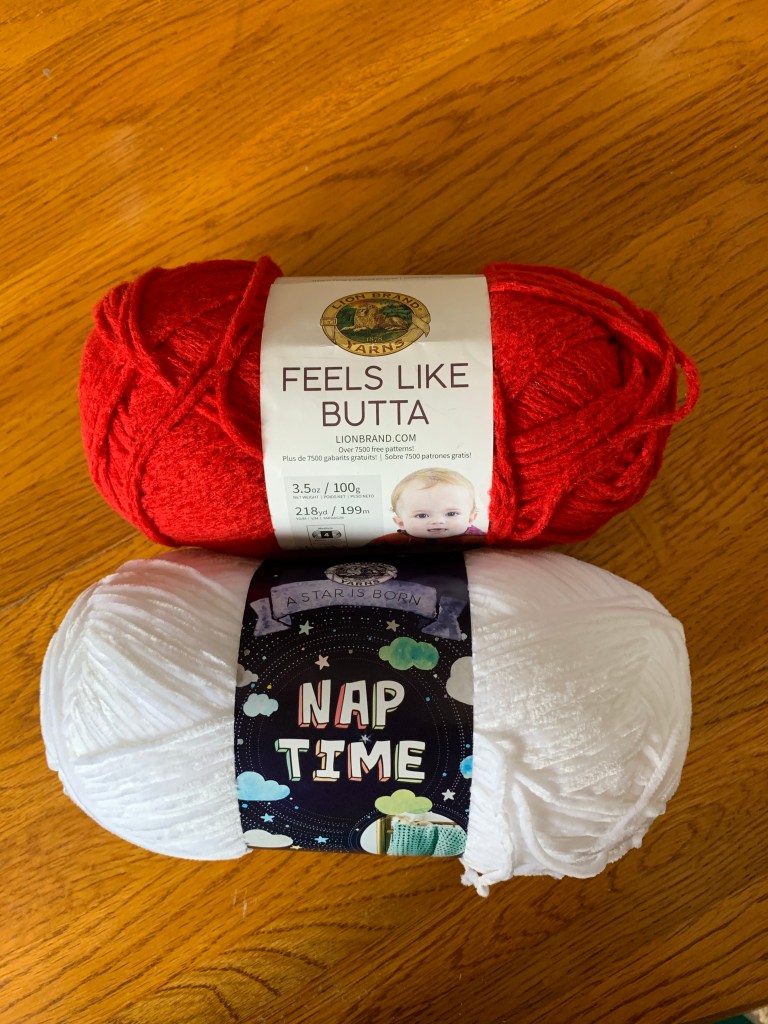 Red baby yarn (I used Lion’s Brand Feels Like Butta in red)