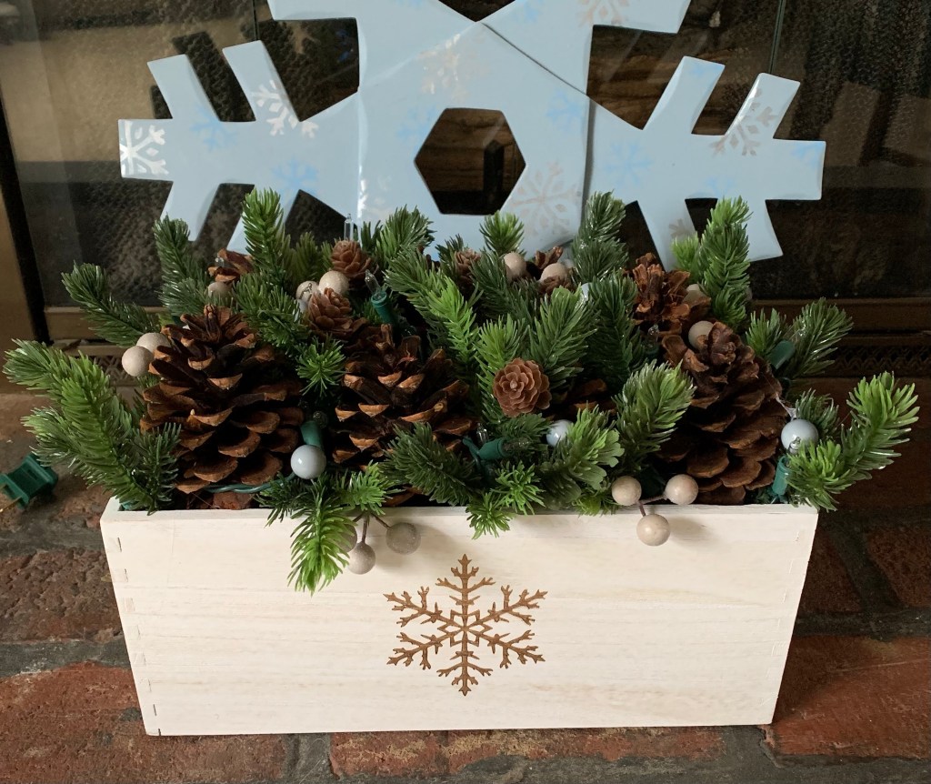 This past Christmas season I was shopping at TJ Maxx looking for some last-minute items for stocking stuffers. In the long, winding checkout line, a small white box caught my eye. It was made from lightweight balsam wood and had a simple snowflake stamped on it. At $7.99, I decided to throw it on top of my pile of Christmas purchases. By the time I was pulling my car out of the parking lot, I was plotting what to do to make this simple box something warm and inviting for the cold months ahead.