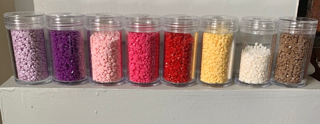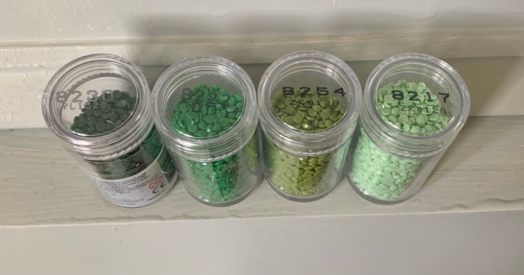 Tip: if you have the paint, but not the Diamond Dotz, simply paint a small swatch of paint onto a piece of paper and bring it with you to the craft store. This is the best way to find the exact match you’re looking for.