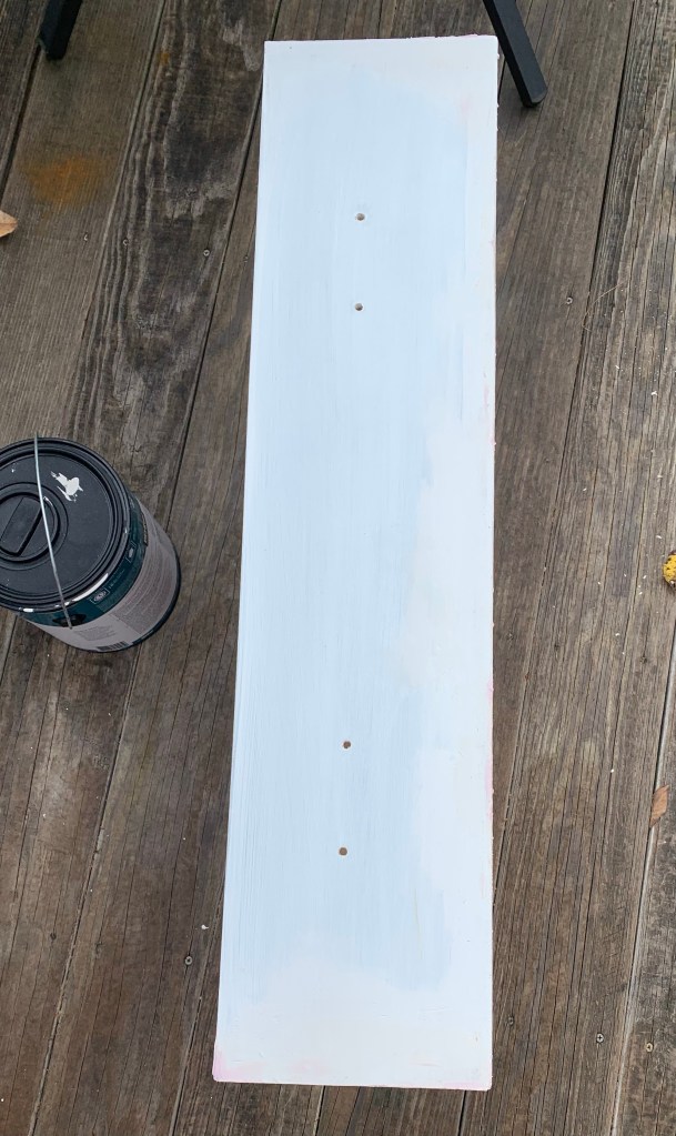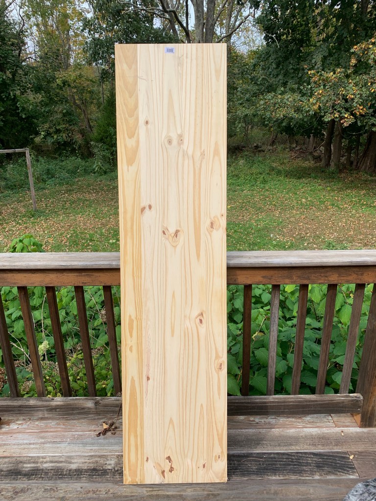 Placing the piece upside down, I glued the plywood to the bottom using wood glue. Then I found several heavy boxes in my garage and sat them on top of the wood until it was dry.