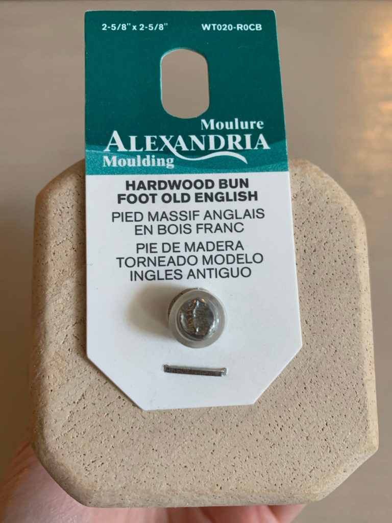 To lift up the piece I found some cute bun table legs. Since the piece is very heavy, I went with eight legs to help distribute the weight.