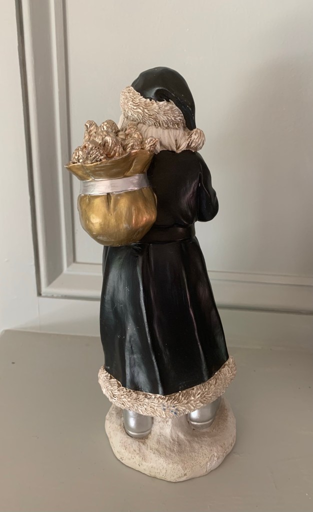 At $2.99, I wanted to give it a try. After a reverse image search, I was no closer to discovering where this navy Santa came from. Other than a Macy’s barcode on the bottom of his base, I had nothing to go from. With that mystery still lingering, I started work on re-inventing him.