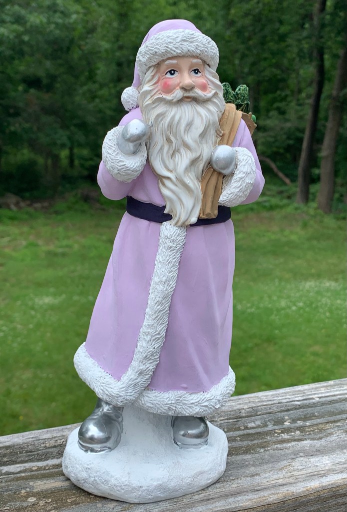 I think my new purple Santa looks so much better than when I found him. A little bit of paint took him from dark and dreary to bright and cheery. I want to find some purple ornaments to help make him look even better. All he needed was a good cleaning and some paint and he’s got a new life. Happy crafting!