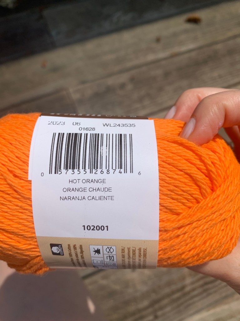 Like the other squares, I used Sugar’n Cream cotton yarn. The color I used for this piece is hot orange.