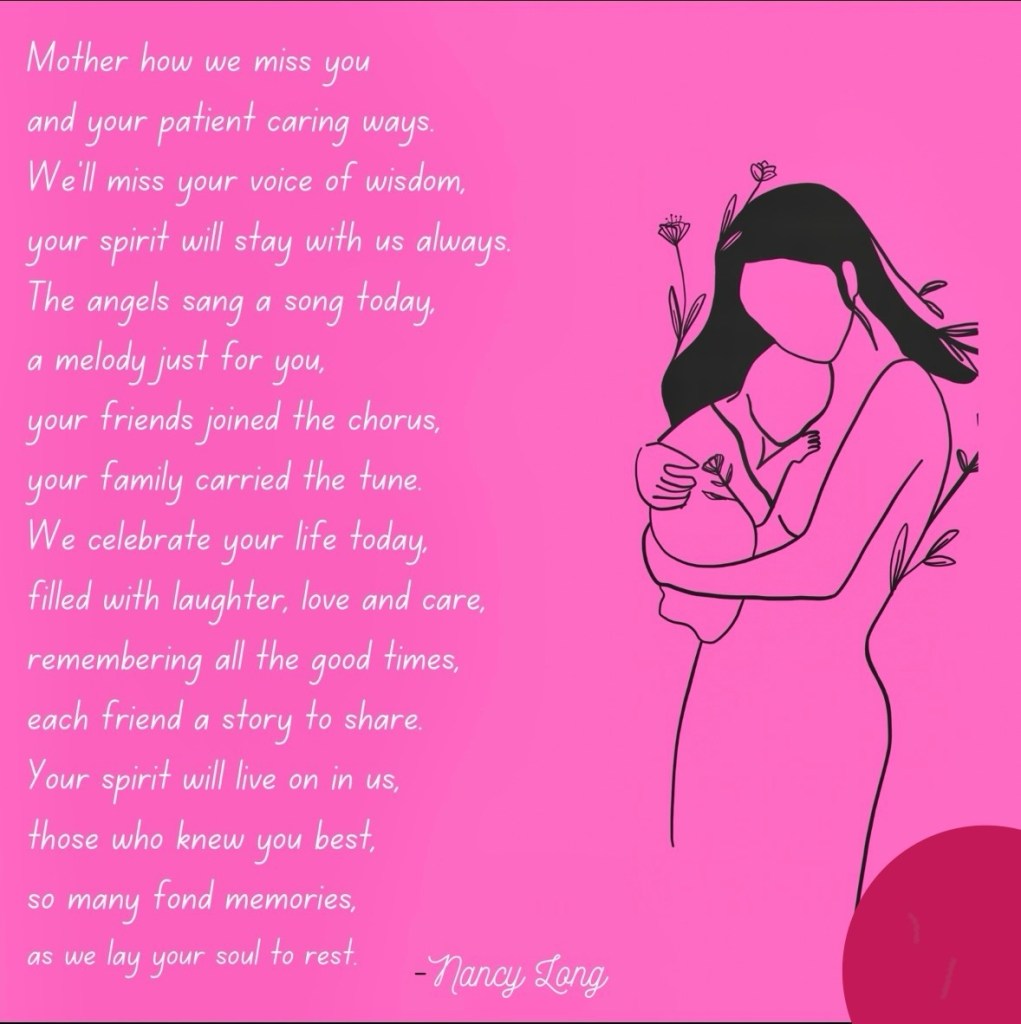 I’m no poet, but I came up with a few passable poems. I thought about starting a small business to make my own memorial cards, but life took me in other directions. Family and work never allowed me the time, and I had no idea how to start such a business. The poems got tucked away into an old box of photos and forgotten. I found them when I was looking for pictures to display at my mother’s wake. I think that is her way to telling me to share them with you now.