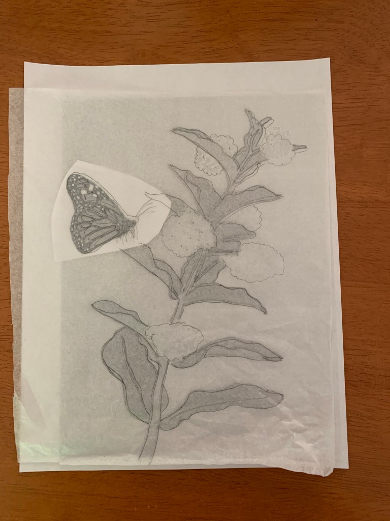 Clip art images of milkweed and butterfly and a piece of tissue for tracing.