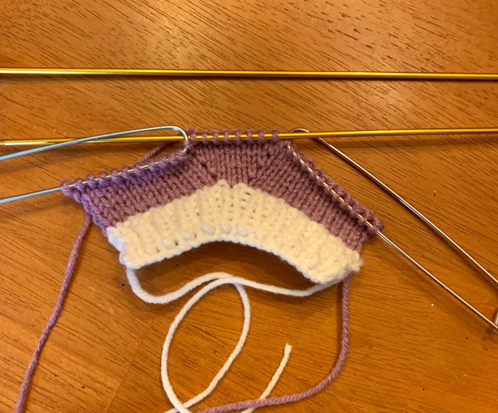 Knit in the stockinette stitch (purl row, knit row) for 4 rows.